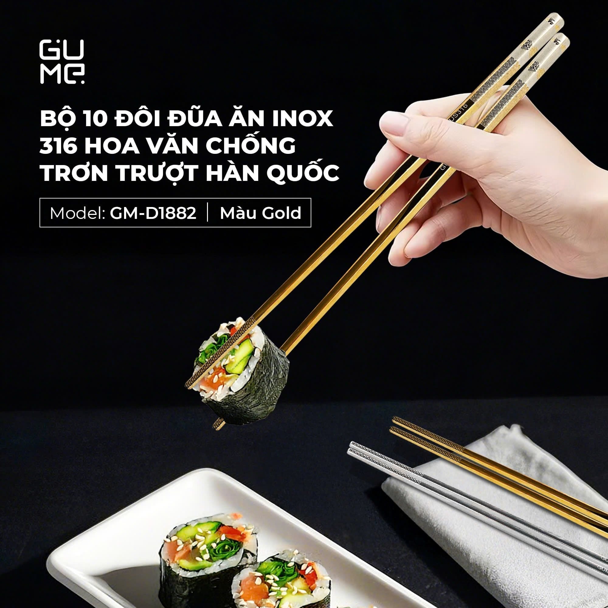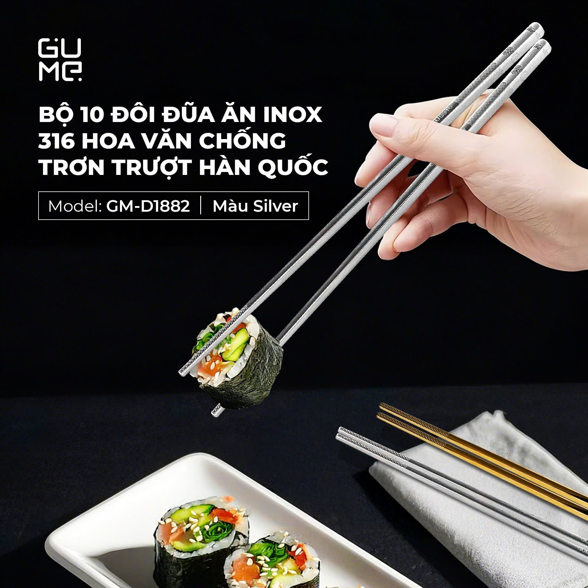 Bộ 10 Đôi Đũa Inox 316 Hàn Quốc GUME GM-D1882