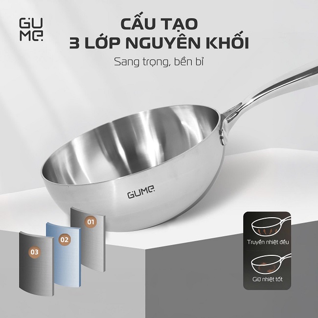 Chảo Nguyên Khối Sâu Lòng Inox 18/10 Gume Trimax GM-W1524 - Bảo hành 1 đổi 1 trong 15 ngày